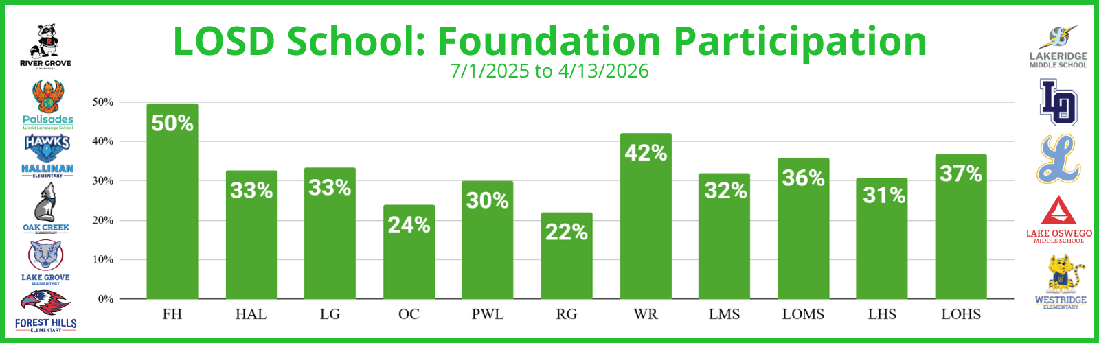 Please check the list of 2025–26 donors HERE. If you don’t see your name, but gave through your employer, please note that it can take up to 60 days for those gifts to reach us. If you have made a pledge to this campaign, your name will appear when you have converted your pledge to a donation. If you have further questions, please don’t hesitate to reach out to foundation@loswego.k12.or.us.